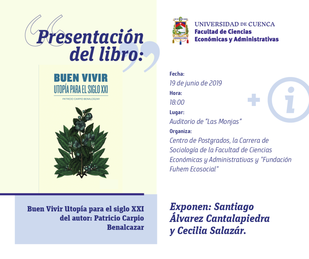 Hoy 19 de junio tendrá lugar la presentación pública del libro de Patricio Carpio Benalcazar Buen Vivir: Utopía para el Siglo XXI.