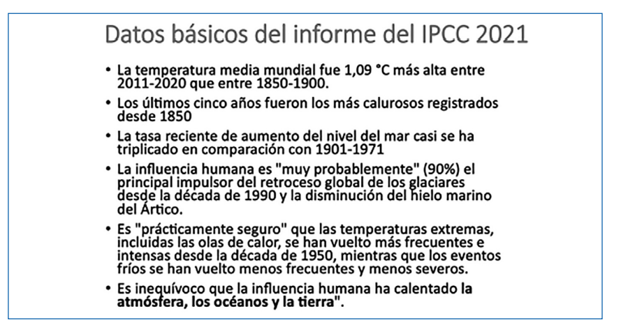 Cuadro 1. Datos básicos del Informe del IPCC 2021