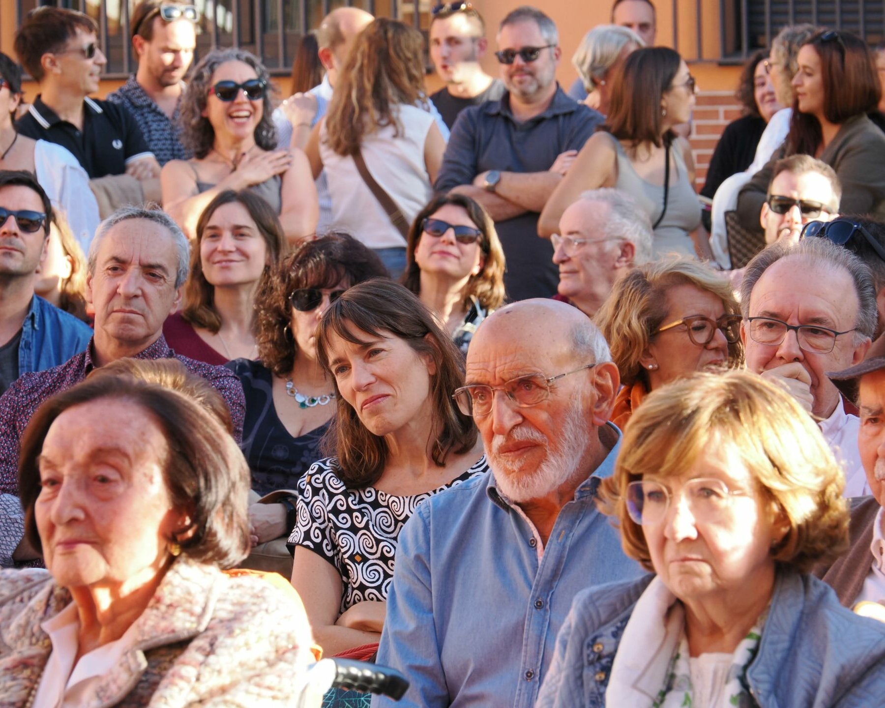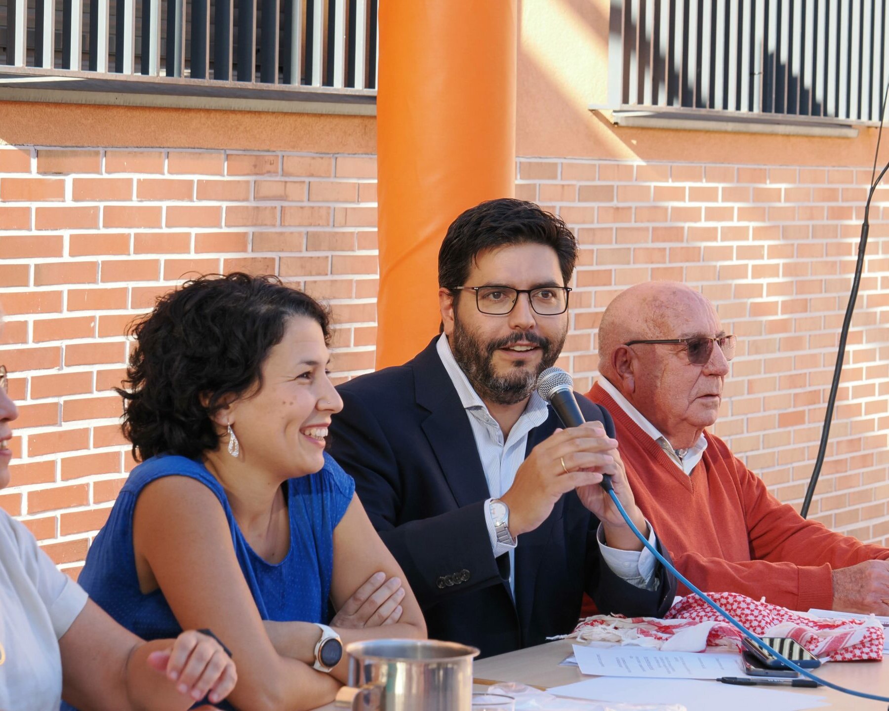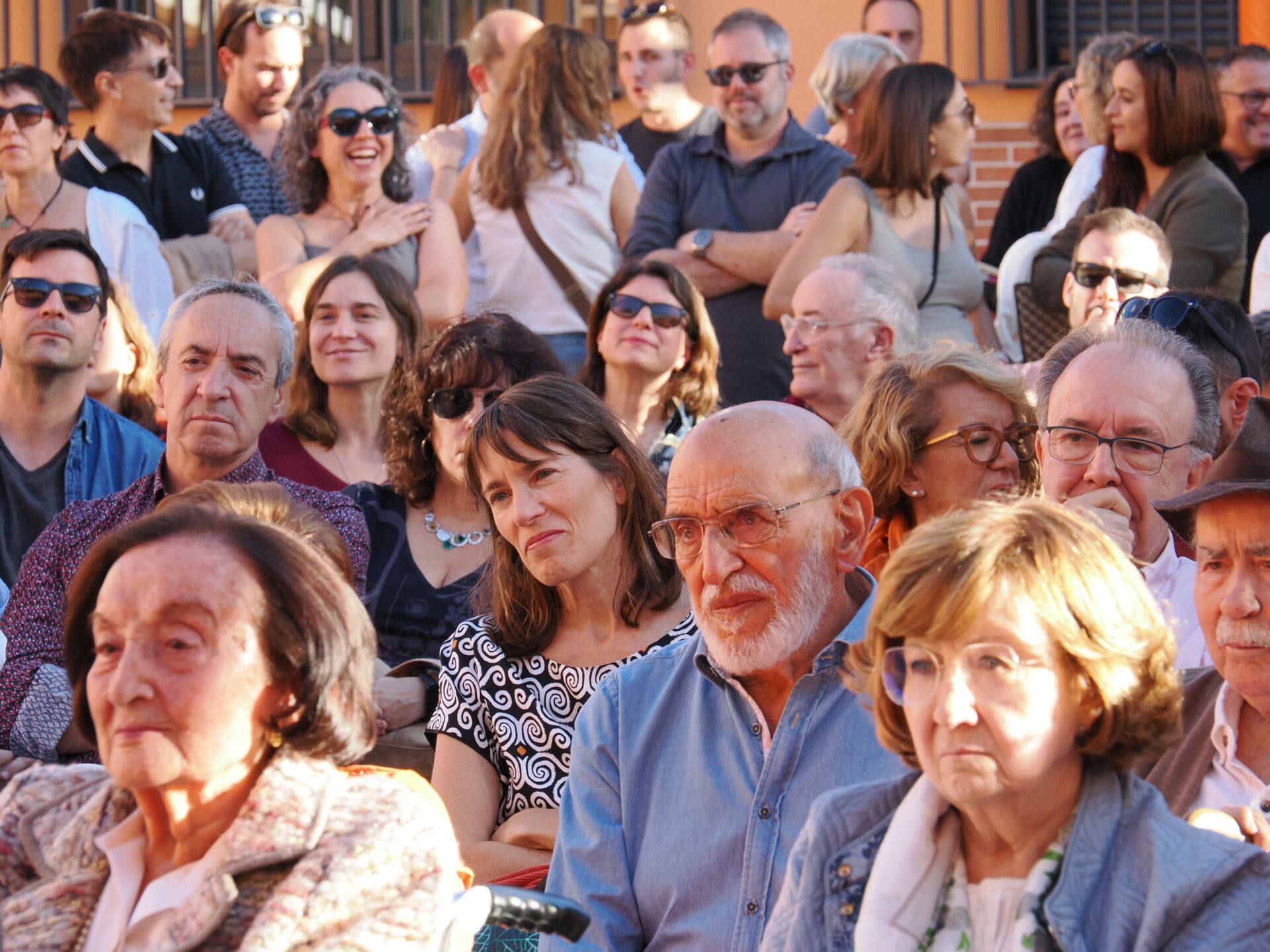 Centenares de personas se congregaron en el “Patio de la Constitución” para escuchar los testimonios de Lidia Olivera, Miguel Ángel Ortega, Juan Piqueras, Pura Silgo y Alejandro Merino, quienes desde la mesa iniciaron el acto y un turno de palabra para explicar sus vivencias desde tres lugares muy distintos: el personal de administración y servicios, las aulas y la dirección del centro en distintos momentos de la historia del Montserrat. Se mezclaron recuerdos del pasado con vivencias actuales en las que hubo tiempo para la nostalgia (incluida alguna lágrima), y también para las risas. Después continuaron desde el micrófono abierto: Arantxa Basabe y Pablo Olivera.
