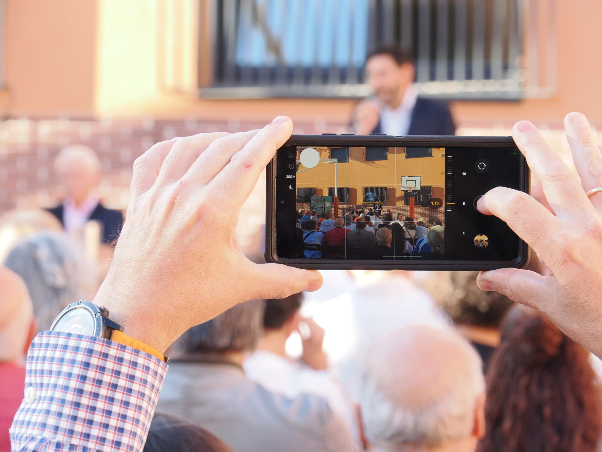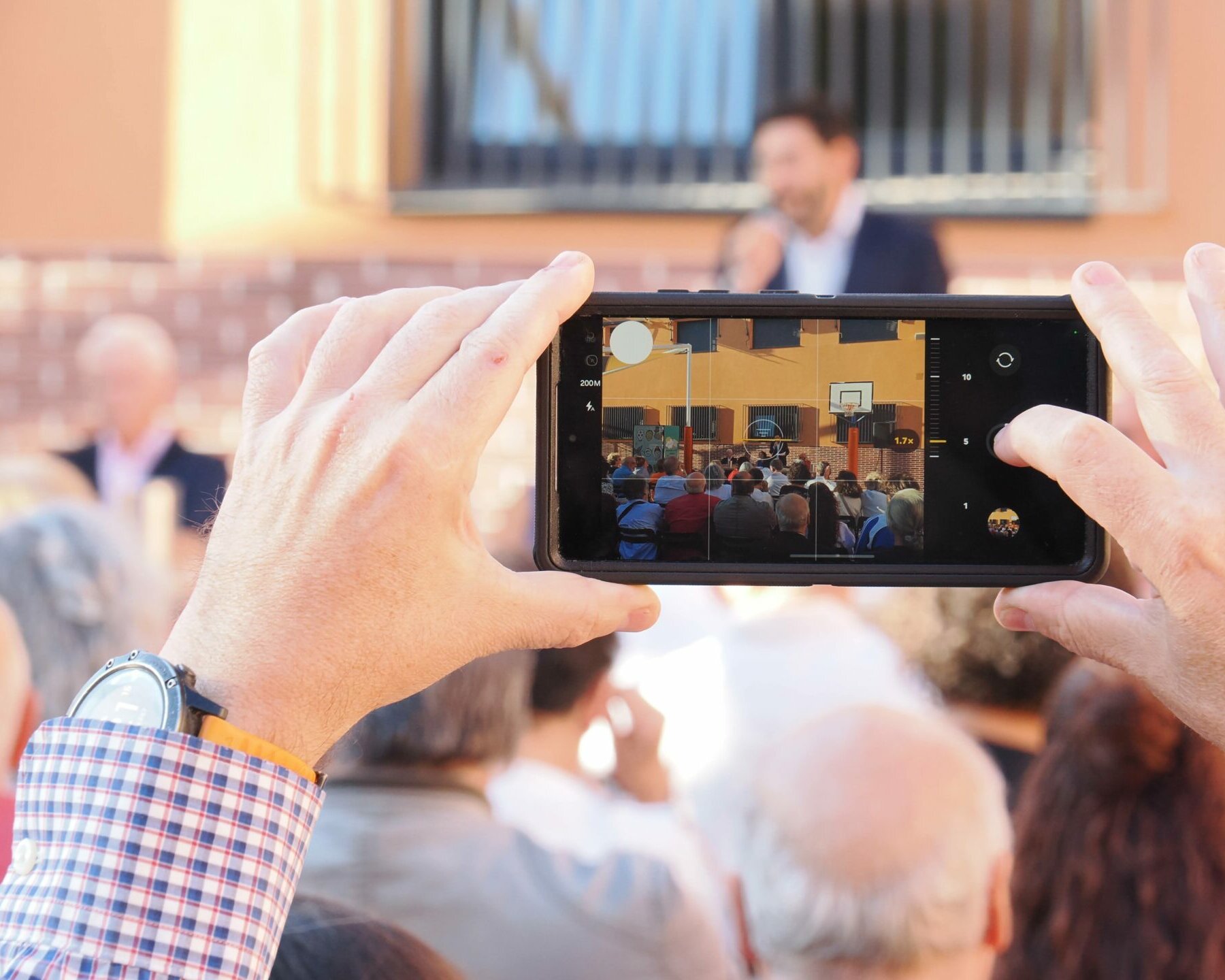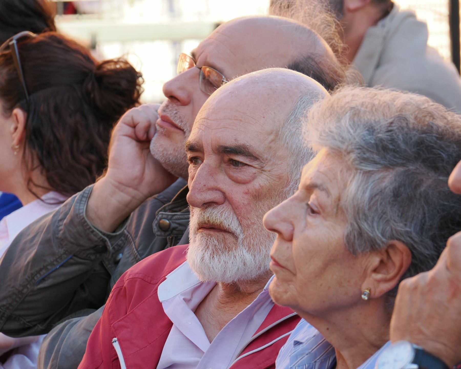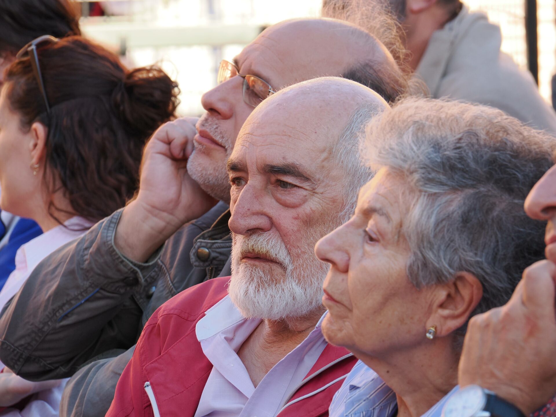 Centenares de personas se congregaron en el “Patio de la Constitución” para escuchar los testimonios de Lidia Olivera, Miguel Ángel Ortega, Juan Piqueras, Pura Silgo y Alejandro Merino, quienes desde la mesa iniciaron el acto y un turno de palabra para explicar sus vivencias desde tres lugares muy distintos: el personal de administración y servicios, las aulas y la dirección del centro en distintos momentos de la historia del Montserrat. Se mezclaron recuerdos del pasado con vivencias actuales en las que hubo tiempo para la nostalgia (incluida alguna lágrima), y también para las risas. Después continuaron desde el micrófono abierto: Arantxa Basabe y Pablo Olivera.