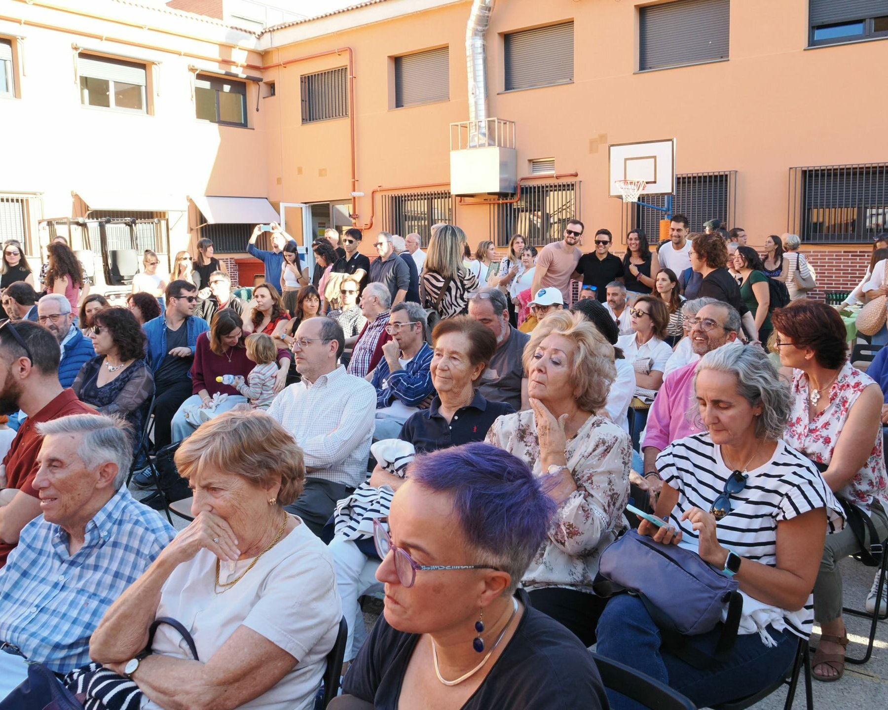 La mesa inicial sirvió de punto de partida a una larga tarde noche en la que los abrazos, los selfis y los gestos de sorpresa se sucedían. La alegría era contagiosa al ver la emoción con la que se producían cientos de reencuentros entre antiguo alumnado con personas que fueron clave en su educación y su desarrollo personal. Aunque el centro cerró sus puertas a las 21:30, la alegría del reencuentro se propagó por todo el barrio durante mucho más tiempo.