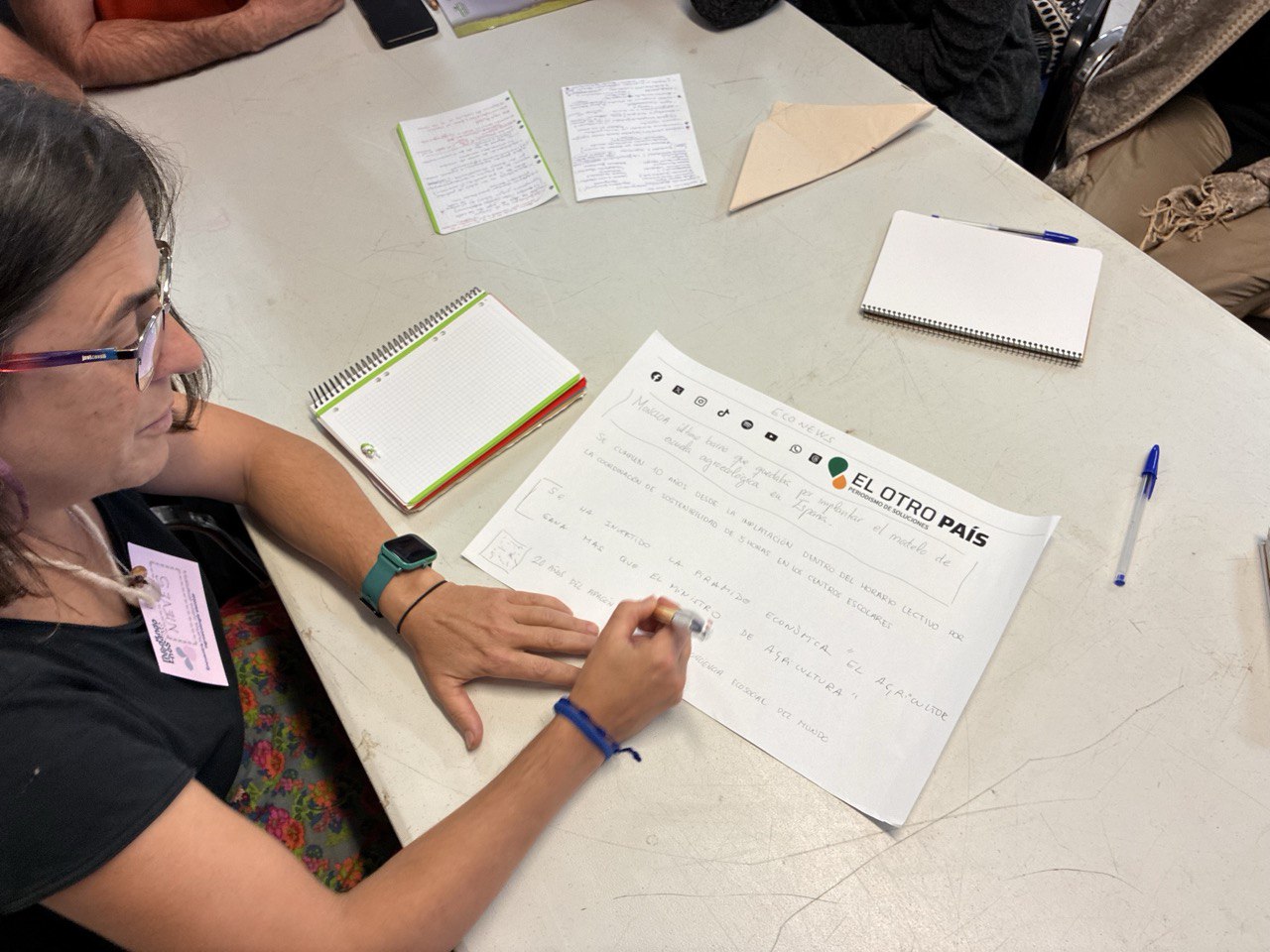 En el taller “Agroecotopías escolares. Futuros deseables para la agroecología en la escuela”, con José Luis Fernández -Kois (Tangente) exploramos escenarios para 2045, imaginando centros educativos con la agroecología como eje transversal y reflexionando sobre cambios necesarios en políticas públicas, currículos y participación comunitaria. Este espacio combinó creatividad, optimismo y humor, y sirvió de base para los debates posteriores.