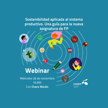 El próximo 26 de noviembre celebramos una sesión imprescindible para docentes de Formación Profesional coordinada por Charo Morán, técnica de Educación Ecosocial en FUHEM, bajo el título: “Sostenibilidad aplicada al sistema productivo. Una guía para la nueva asignatura de FP”.