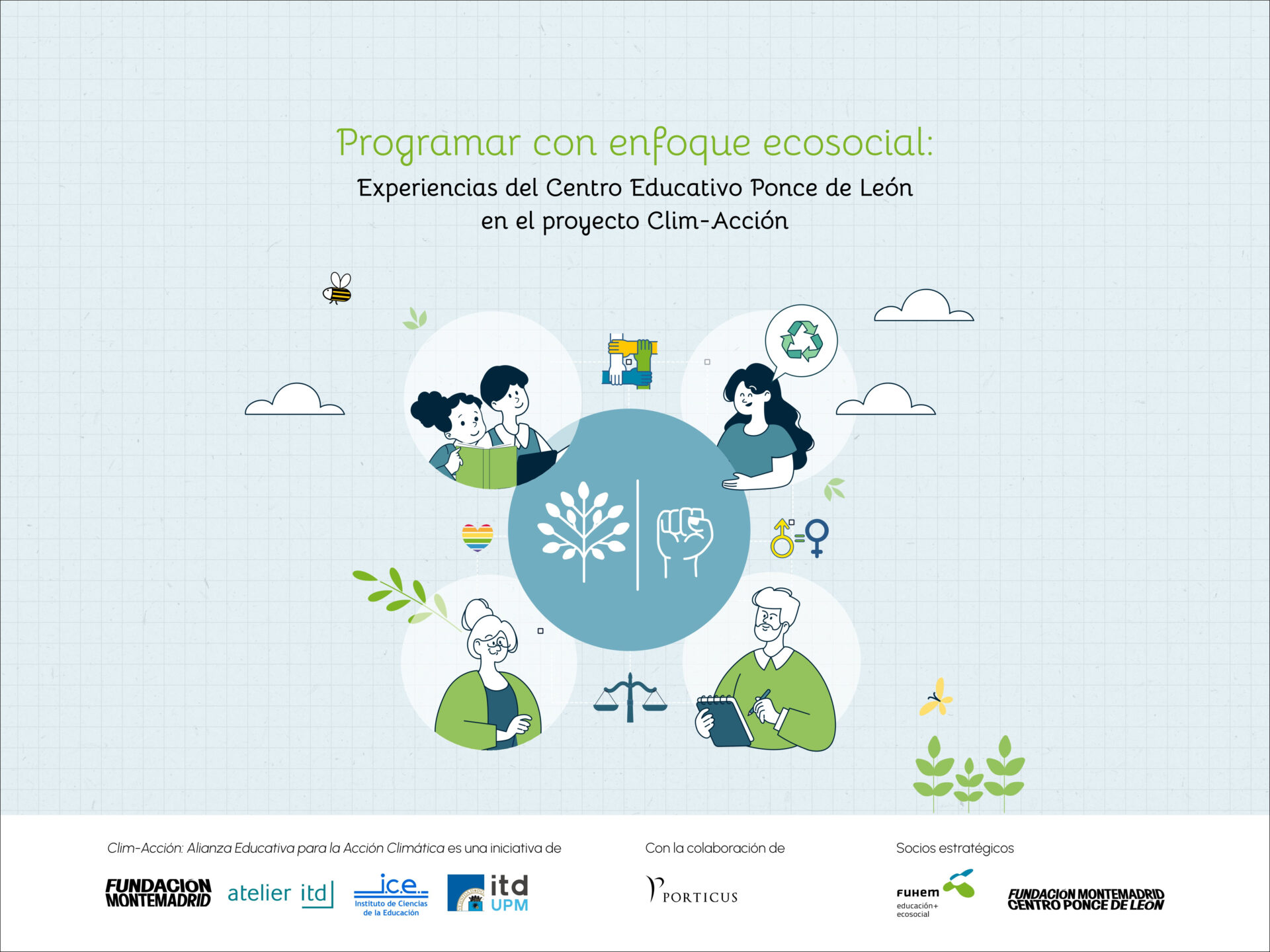 En este contexto nace Clim-Acción: Alianza Educativa para la Acción Climática, un proyecto colaborativo que busca fortalecer la educación para la acción climática desde una mirada integral de centro escolar. Esta es una iniciativa impulsada por la Fundación Montemadrid, Atelier itd, el Instituto de Ciencias de la Educación (ICE) y el Centro de Innovación en Tecnología para el Desarrollo Humano (itdUPM), ambos de la Universidad Politécnica de Madrid.