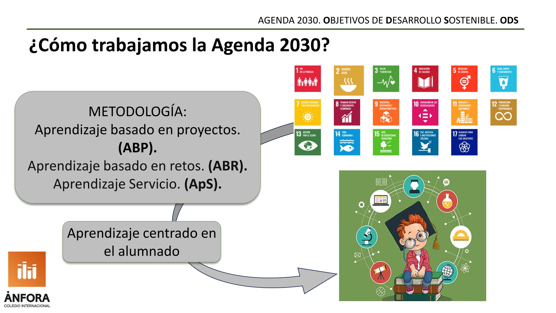 Elizabeth Suárez Flores, del Colegio Intencional Ánfora de Zaragoza, expuso su implementación integral de la Agenda 2030 a lo largo de Infantil, Primaria y Secundaria-Bachillerato, articulando un proceso continuo de acompañamiento educativo basado en metodologías como ABP, ABR y Aprendizaje-Servicio. A través de formación docente, coordinación entre etapas y evaluación por indicadores, el centro desarrolla proyectos anuales vinculados a los ODS, entre ellos el programa “Rescatadores del Planeta” de Fundación Ibercaja, con actividades que van desde estudios estadísticos, reciclaje, hábitos saludables y análisis de publicidad hasta acciones solidarias y alianzas internacionales. Entre sus resultados destacan publicaciones estudiantiles, creación de un punto de reciclaje premiado y el hermanamiento con una escuela de Madagascar mediante el Proyecto Namana, que refuerza el ODS 17. El centro ha sido reconocido en varias ocasiones por su número de acciones ecosociales y tiene el Sello de Centro Ecosocial Experto.