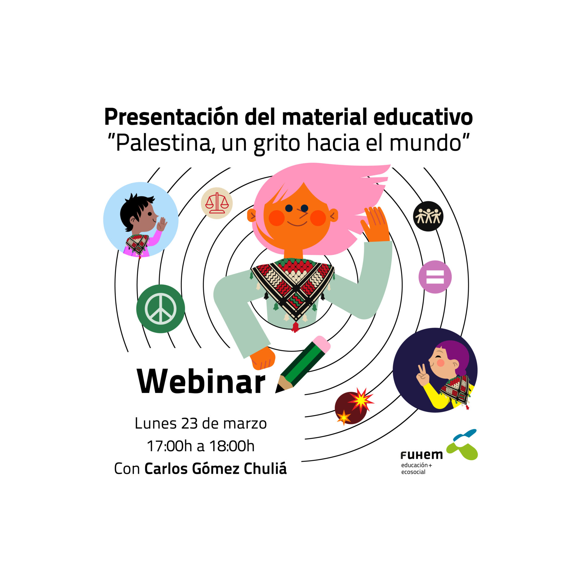 Te invitamos al webinar de presentación de la publicación «Palestina, un grito hacia el mundo», que tendrá lugar el próximo 23 de marzo de 2026 a las 17:00 horas con la participación de Carlos Gómez Chuliá (FUHEM). Durante la sesión se presentará una propuesta educativa para comprender el mundo desde la justicia, los cuidados y la paz. La mirada global del material se aterriza en Palestina porque lo que ocurre allí desde varias décadas constituye un elemento geoestratégico fundamental para comprender el mundo actual y por lo tanto, un elemento imprescindible para la educación ecosocial.