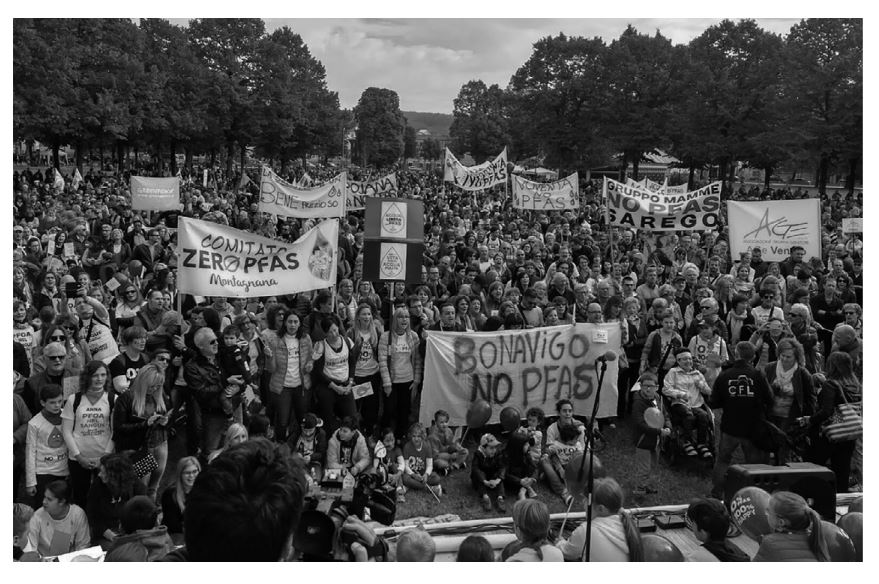 Foto de la gran manifestación (8 de octubre de 2017, Lonigo) en la que participaron 11 000 personas y gracias a la que la Región del Veneto rebajó los límites de PFAS en el agua potable.