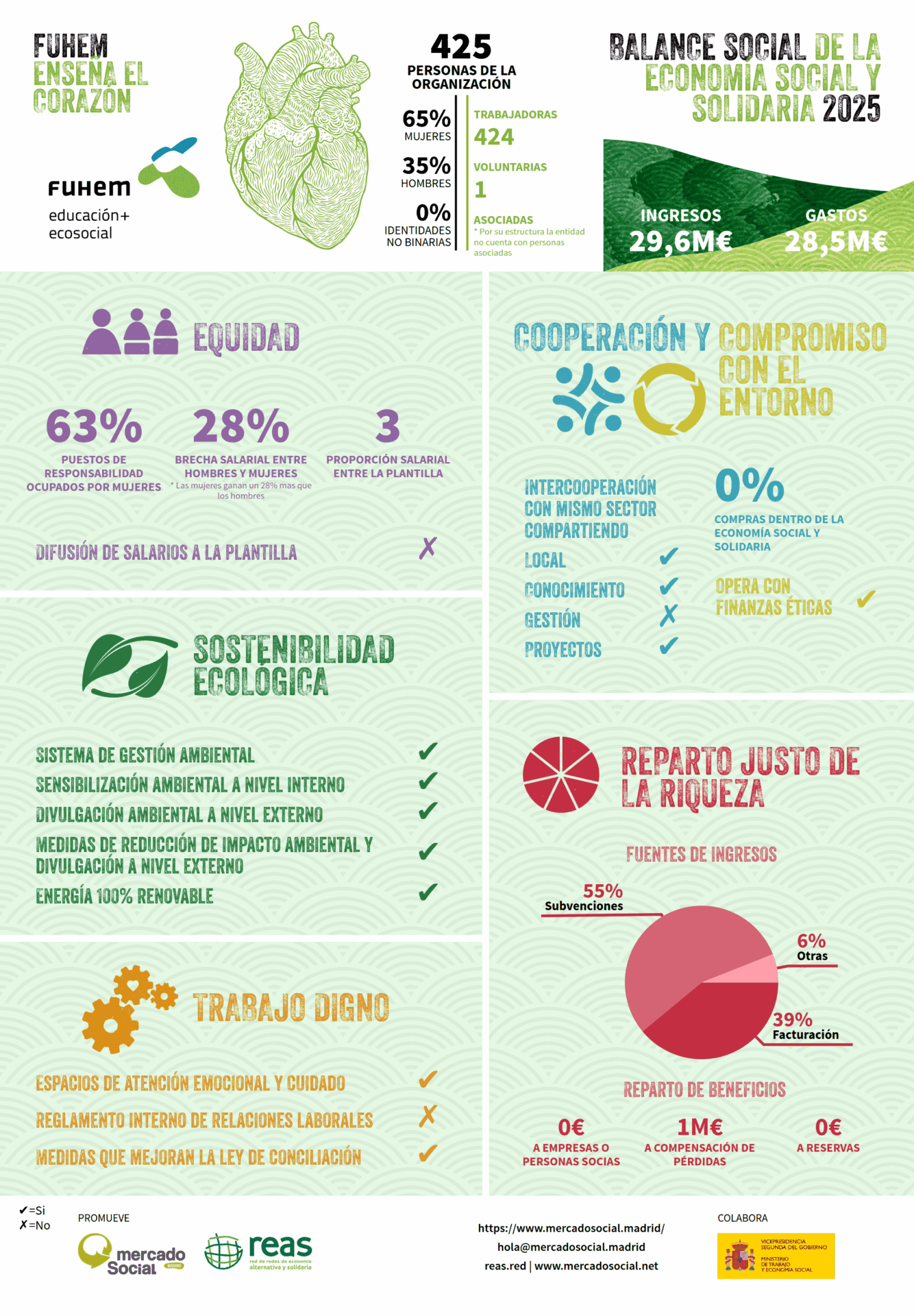 - Una infografía que permite, de un sólo vistazo, acceder al corazón de la entidad, mostrando su cumplimiento de los principios de la Economía Social y Solidaria. Enseñamos el corazón.